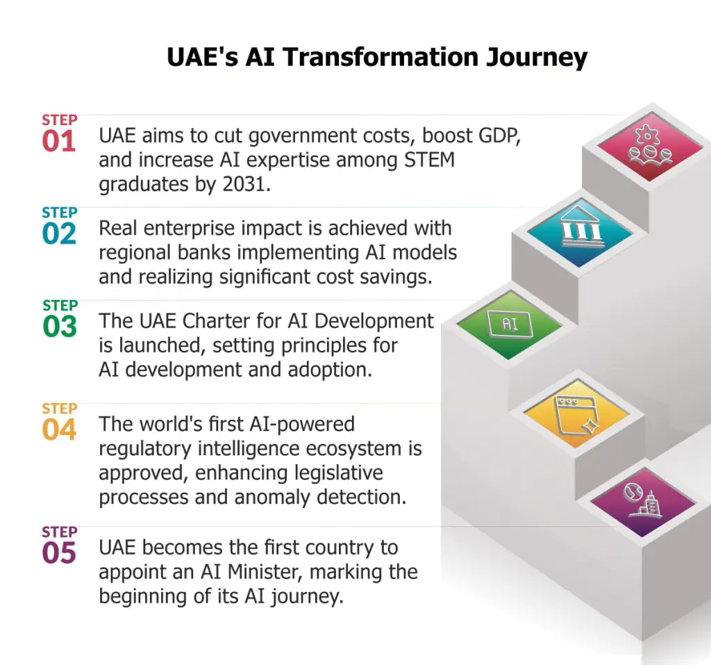 The vision started in 2017 when we became the first country to appoint a Minister of State for Artificial Intelligence. According to the UAE Strategy for Artificial Intelligence 2031, we are aiming to cut government costs by 50 percent while boosting GDP by 35 percent. Those are not aspirational numbers. They are driving real infrastructure investments and regulatory clarity that allows us to move fast.